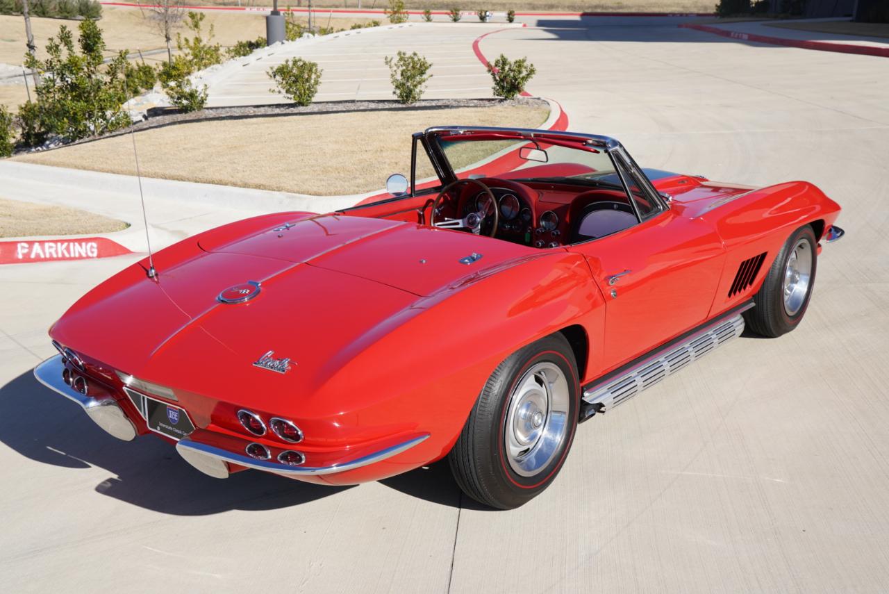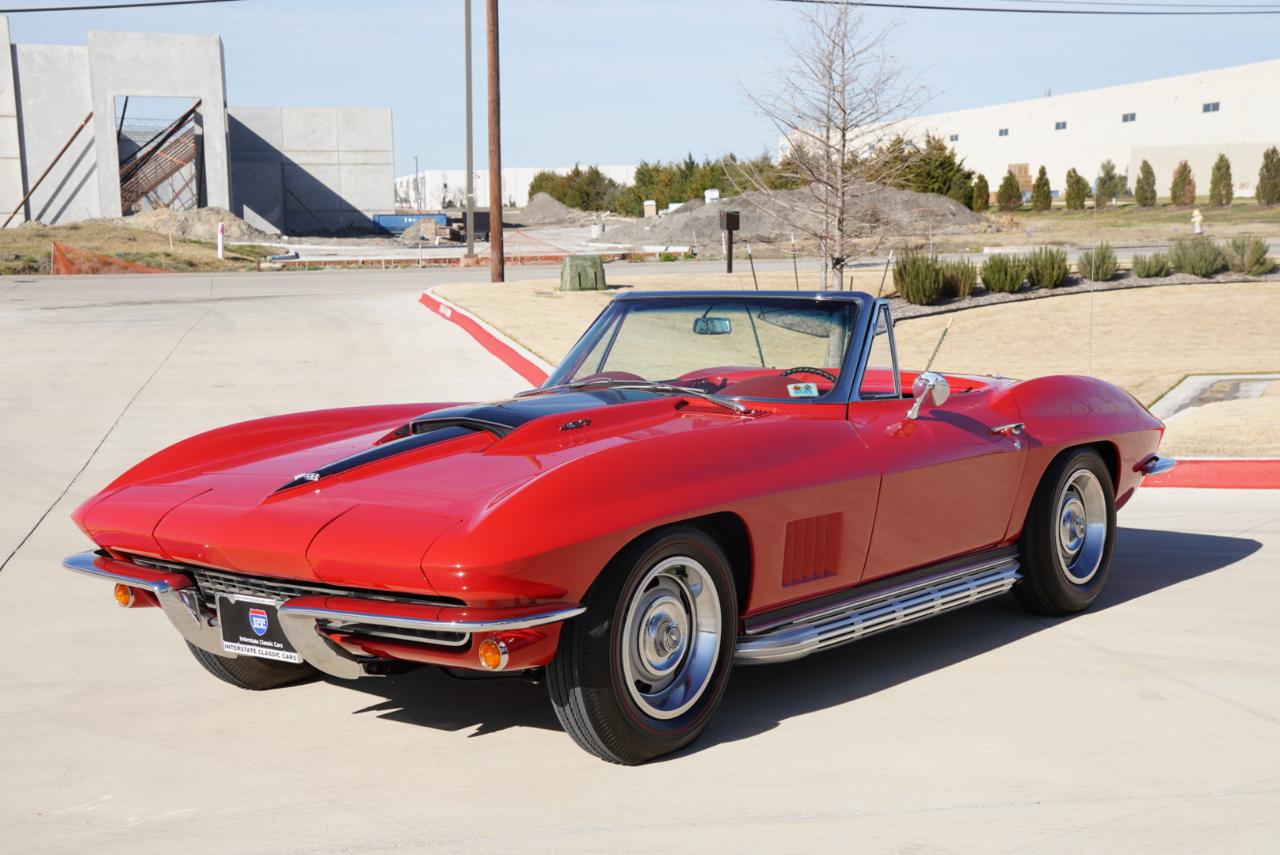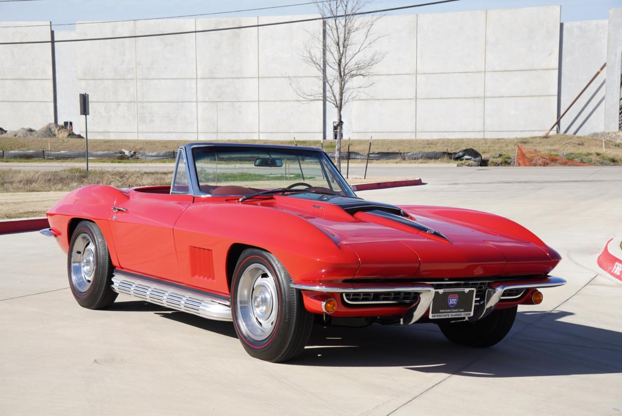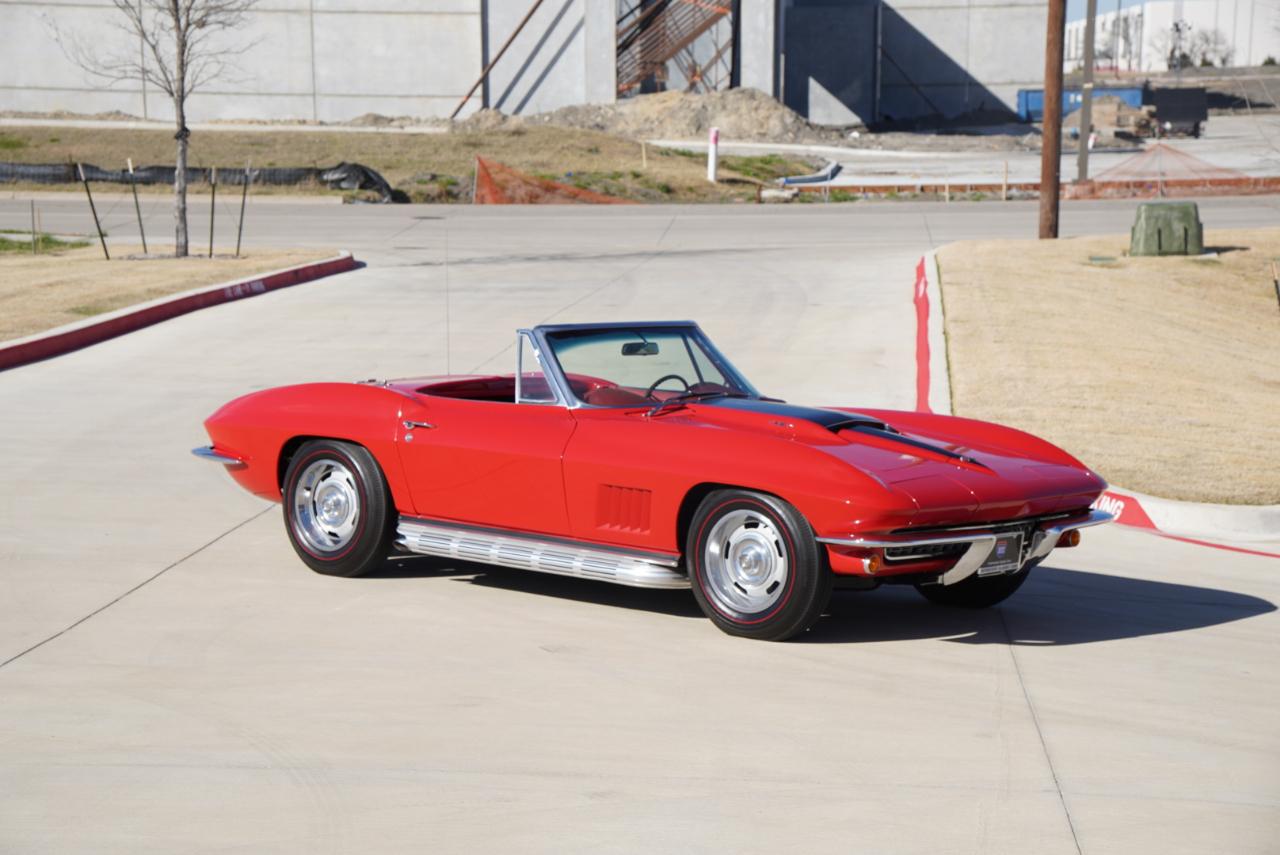 1967 Corvette Roadster ConvertibleRally Red Exterior, Red Interior Vinyl Bucket Seats with White Convertible Top