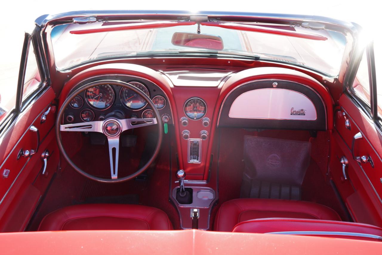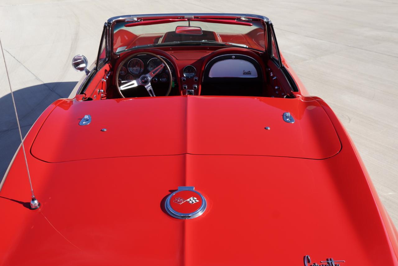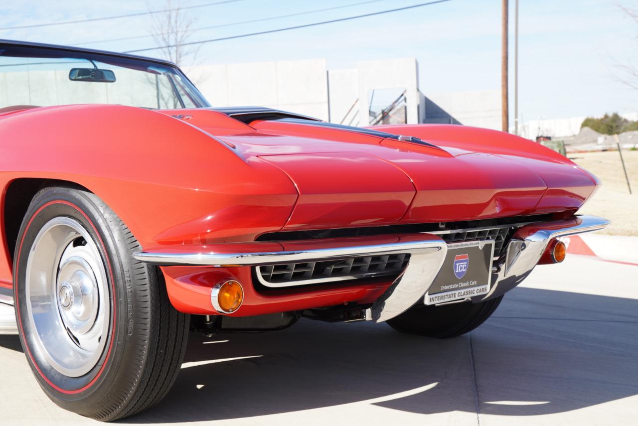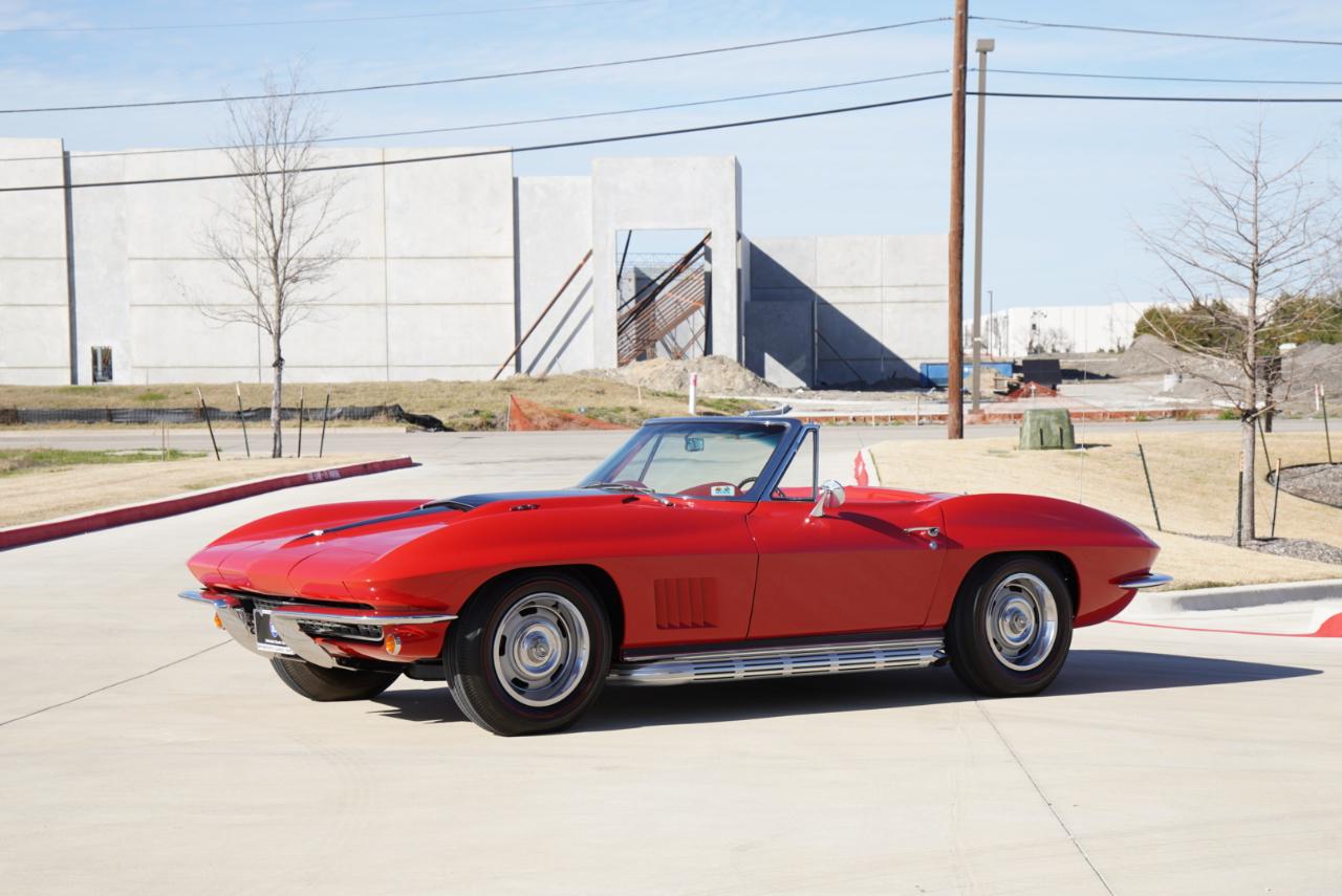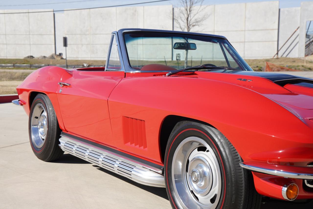 1967 Corvette Roadster ConvertibleRally Red Exterior, Red Interior Vinyl Bucket Seats with White Convertible Top