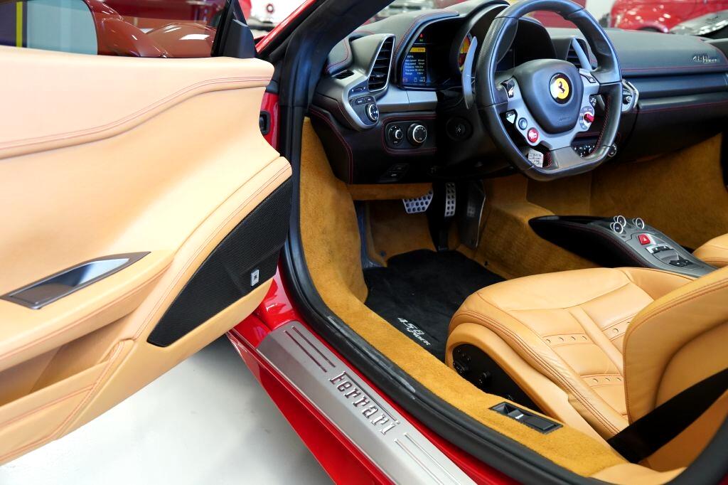 Pristine 458 Spider that is ready to enjoy, look no further. This immaculate and well-cared for 458 in classic Rosso Corsa/Beige comes with both keys, car cover, books, tools, original window sticker, and battery tender. Red Brake Calipers, Daytona Style Seats, Scuderia Shields, Painted 20'' Sport Rims, Full Electric Seats, High Power HIFI System, Special Red Stitching, New Floor Mats in Black with Ferrari Crest August 2023, Full front PPF installed August 2023, Headliner reconditioned Nov 2023, Brake recall completed Nov 2023, Full inspection at dealer Nov 2023, Full ceramic coating Nov 2023, Engine lid struts replaced July 2024, New battery Sept 2024, Oil change and general check/inspection Sept 2024 at mileage 10,438, Full detail Jan 2025. Immaculate and Highly Desired Color Combination.