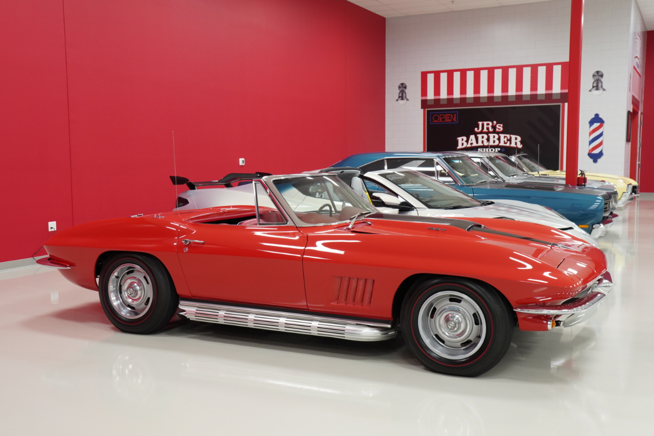 1967 Corvette Roadster ConvertibleRally Red Exterior, Red Interior Vinyl Bucket Seats with White Convertible Top